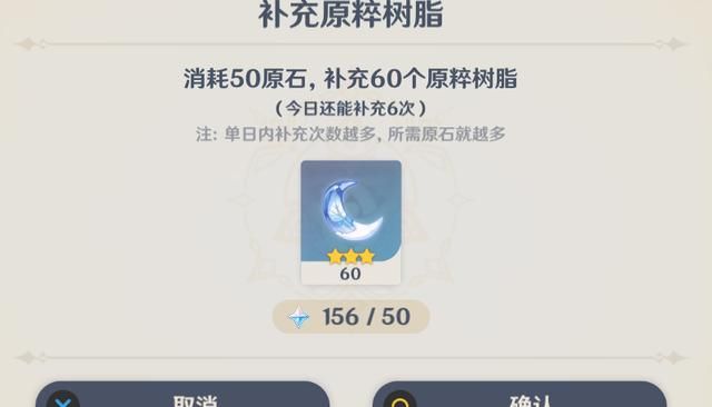 那么如果真的推出树脂月卡,需要多少原石呢?目前玩家每天首次购买60点树脂需要50个原石,1260点树脂就相当于1050个原石,不过即将推出的是树脂月卡,那肯定会便宜不少,大概和原石月卡一样,都需要300创世结晶。