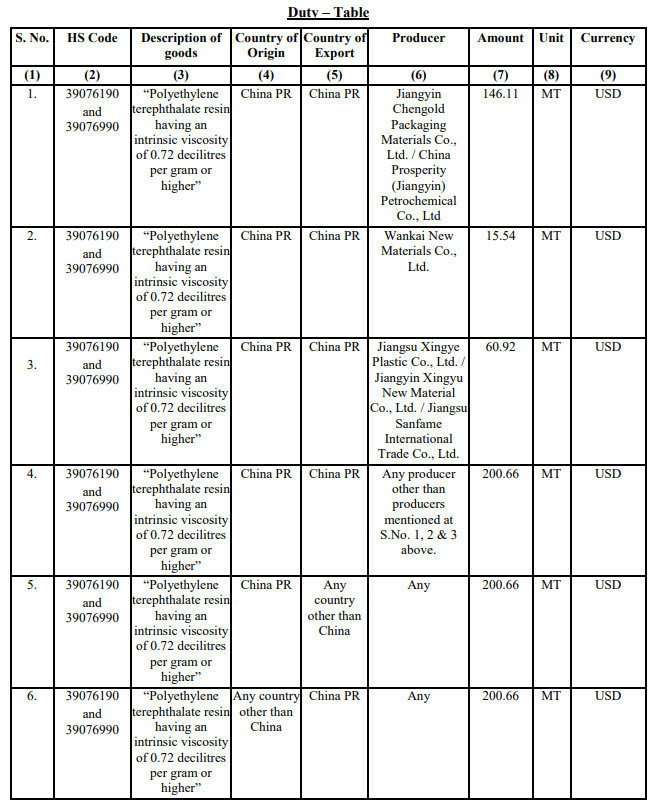 印度商工部在12月28日的一则通告中称,该国将对源自中国的聚对苯二甲酸乙二酯(PET)树脂征收为期五年的反倾销税。