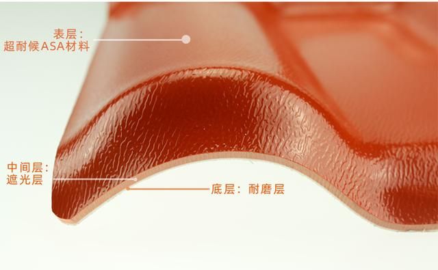 1、树脂瓦是采用ASA超耐候工程树脂作为表层,加PVC耐磨树脂作为底层,运用高新技术共挤成型。ASA树脂作为表层材料,它具有很强的防腐蚀性能,这层材料决定了树脂瓦的使用寿命和颜色退化程度,非常关键;而PVC树脂增加树脂瓦的强度、耐磨、抗冲击能力强。两种材质的完美结合使得合成树脂瓦非常致密、防水抗渗效果强。