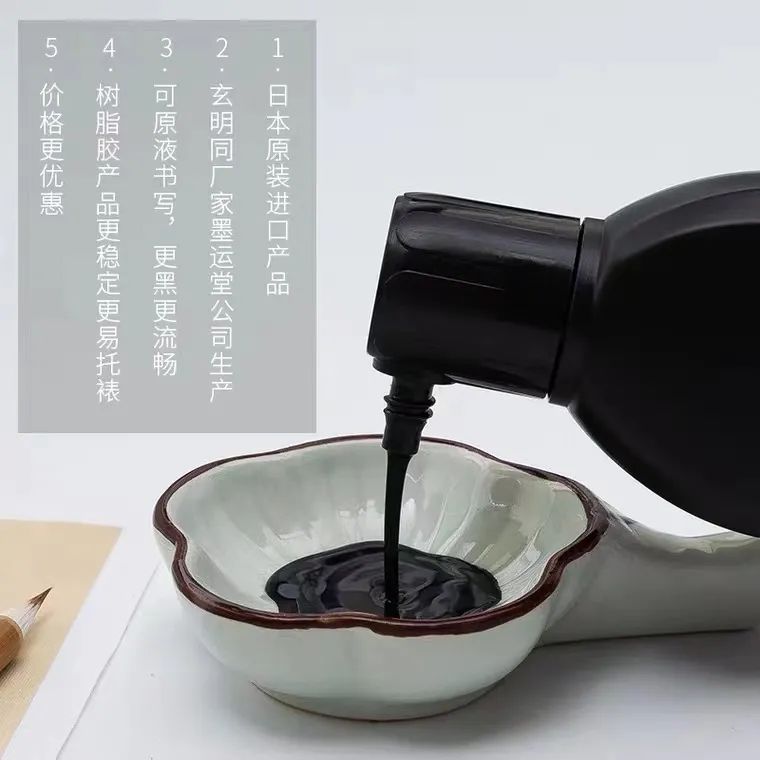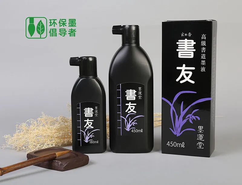 今天给大家推荐一款来自于玄明同厂家——日本墨运堂公司生产的书友墨汁,专门为书友开发的墨汁,墨质黑、亮、细腻,书写流畅、易于装裱、冬季不凝冻。采用树脂胶无防腐剂,不发臭,书写无需兑水,开盖即可使用。