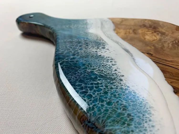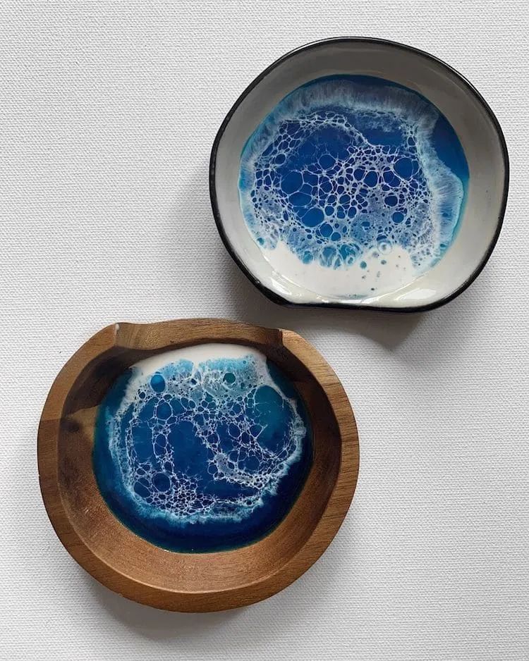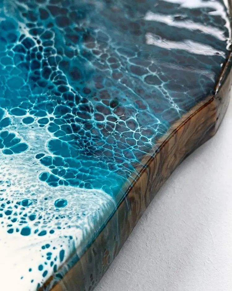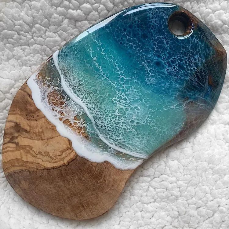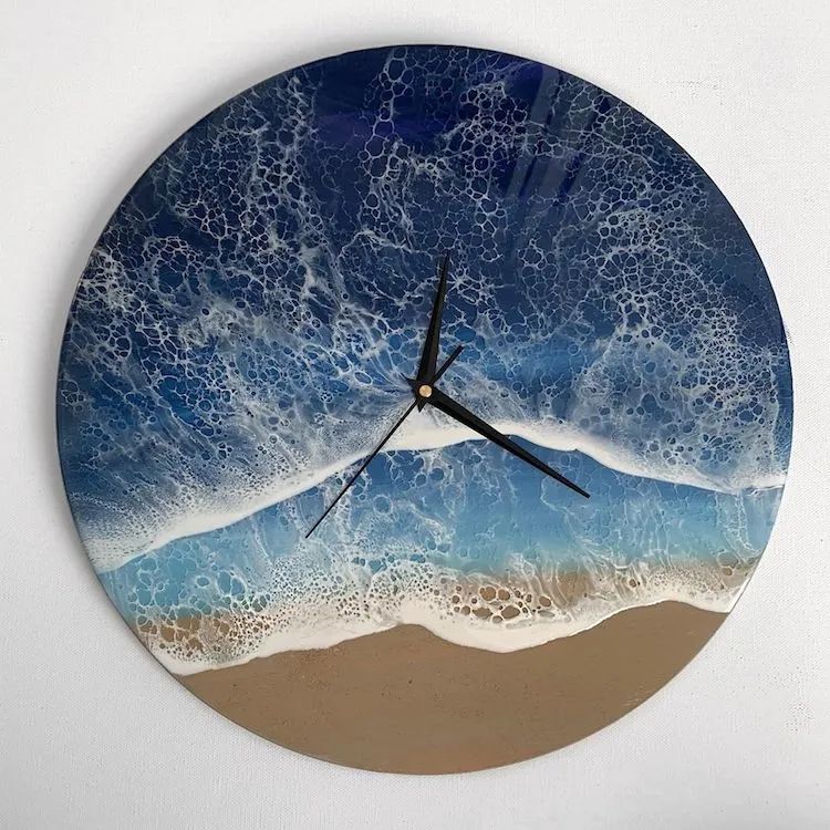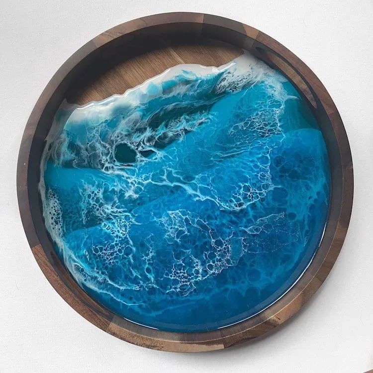 更特别的是,罗尼并不是在这些厨具上画画,而是通过倒入彩色环氧树脂,并将它们混合成精彩的作品。她制作而成的树脂艺术作品,颇有美感,装饰感十足,十分受人喜欢。制作这样的树脂艺术作品并不简单,要表现出海浪的光泽感,还有旋涡和波浪的质感,一般需花费十个小时的时间才能完成一个作品。